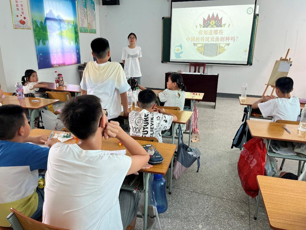 紧接着的第二节“戏韵小天地”课,则让孩子们领略了中华戏曲艺术的魅力。志愿者介绍了戏曲的基本知识,如行当、脸谱的象征意义,并带领孩子们学习简单的戏曲手势。孩子们饶有兴趣地模仿,尝试着用动作表达情绪,初步体验了戏曲表演的韵味和乐趣,在趣味互动中感受国粹的独特风采。