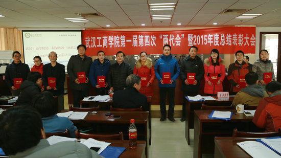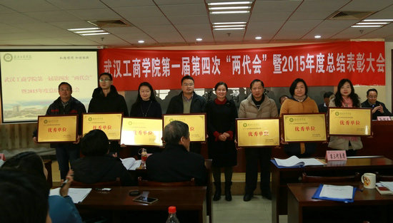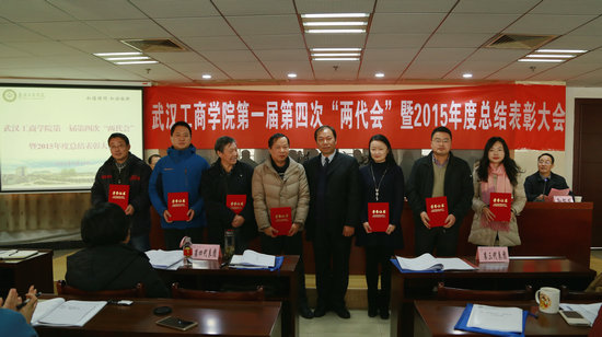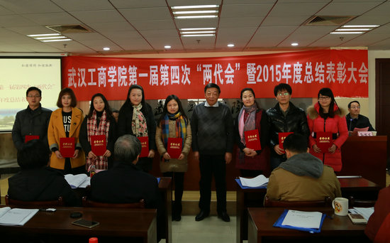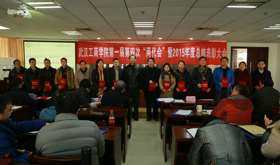 1月19日上午9:00,必赢优惠y272net第一届教职工代表大会暨工会会员代表大会第四次会议暨2015年度总结表彰大会在第三会议室隆重召开。该校董事长彭秀春,校长张金隆,党委书记陈伟,副校长卢炎生、桂裕清、刘腾红,党委副书记孙松发,特聘教授夏再兴,校长助理左宗文、张俊、王程军出席大会。全体“两代会”代表和2015年度各奖项获奖单位、个人代表参会,大会由孙松发副书记主持。