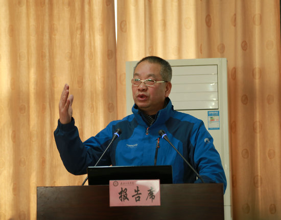 桂裕清副校长宣读《关于表彰2015年度优秀单位、优秀个人、突出成果的决定》 摄影:王铖焱