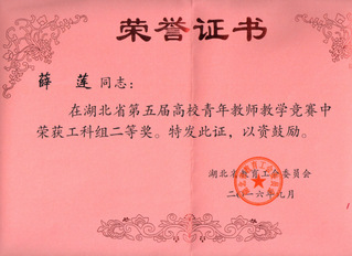 薛莲老师荣获湖北省第五届高校青年教师教学竞赛二等奖