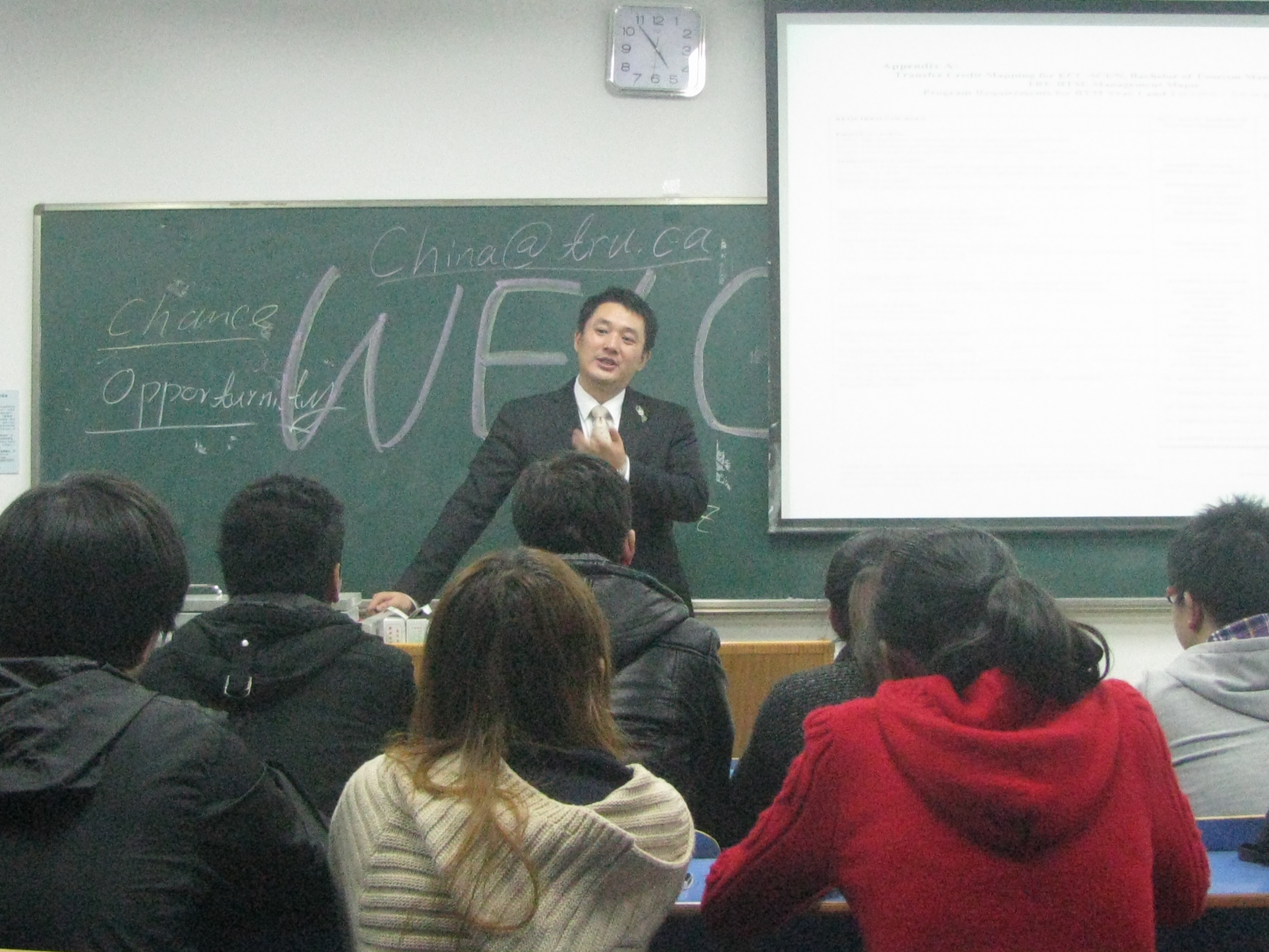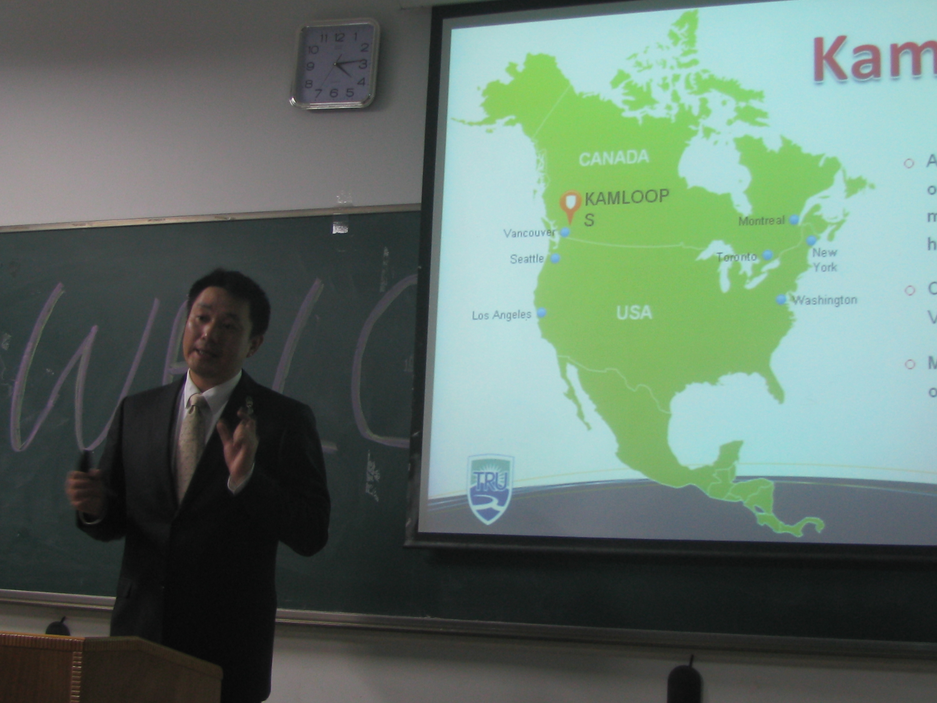 2012年11月15日,加拿大汤姆逊大学校方代表Richard Zhu从上海飞赴我校,为2011级“中加2+2”旅游管理国际班的学生做了一次精彩的演讲。 开场的宣传片里,汤姆逊大学优美的校园风景让在场同学大呼向往。而在同学们关心的教学质量上,Richard Zhu随后就为大家介绍道:“建于1970年的汤姆逊大学(Thompson Rivers University, TRU)是一所可颁发学士文凭、大专文凭证书的公立大学,目前能够提供包括商科、计算机、环境、旅游、艺术在内的100多个种类的学士学位教育和大专文凭证书教育,其文凭全球认证。学校不仅设有1至2年的转学分课程,便于学生转入排名更高的学府,还专门为非英语国家的学生提供各级英语强化课程和大学预科课程。就其与我校合作“2+2”办学的旅游管理来说,该专业在全加排名第二,有非常好的就业前景。户外拓展及野外生存是国际稀缺专业,也是汤姆逊的重点培养方向。汤姆逊大学现有学生13000多人,其中国际留学生达1600人,来自全球50多个国家和地区。 我校国际教育学院马老师表示:“很多学生对于去国外留学都有很多担心和疑惑,我们请汤姆逊大学的代表来给他们解说,希望他们可以了解到更多的信息,从而坚定自己的梦想。”关于国外留学方面,她表示,国际教育学院还会开展一系列活动,成为更多工商学子通往世界的桥梁。” |