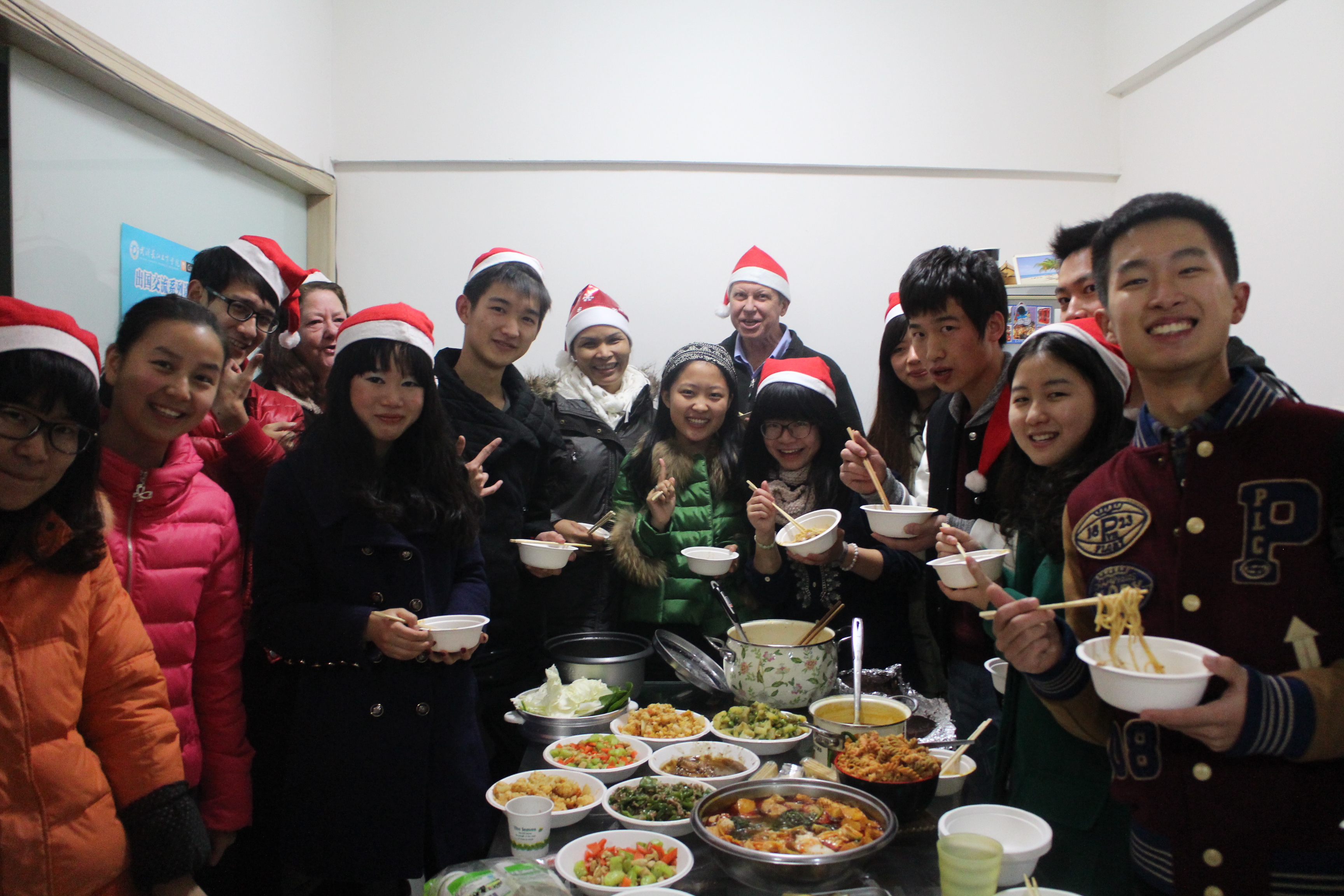 新闻中心讯(记者 刘特 见习记者 吴田芳)12月23日,圣诞节将临,为给外教过一个温暖难忘的圣诞节,武汉长江工商学院大一、大二国际班近30名学生在弘德楼1906为外教举办了一个小小的聚会。国际合作交流处副处长马冬玲、劳晶米兰老师、外教Lyle夫妇以及Judith参加此次聚会。 国际班学生将1906房间进行了一番装扮,小小圣诞树上挂满了琳琅满目的装饰品,墙上满满都是祝福语,每个学生都戴着圣诞帽,更增添了节日的气氛。经过国际班学生精心准备,香喷喷的饭菜被端上了饭桌,看着满满一桌的菜,Judith惊讶的说:“你们太了不起了!”大家都忍不住拿起筷子大快朵颐。 吃完饭后,大家纷纷拿出自己准备的小节目。“jingle bells, jingle bells ,jingle all the way”一首《欢乐圣诞》渲染了浓浓的节日气氛,大家向外教们送出自己的祝福。《江南style》的舞蹈更是将现场的气氛推向高潮,学生们左脚踏一下、右脚踏一下、双手交叉左右摆动,诙谐的动作让现场爆发出一阵阵笑声。 最后国际合作交流处给学生、外教以及外教小助手们分别送出了一份小礼物。Lyle收到的是具有中国特色的小屏风。屏风有着悠久的历史和丰富的形式,工艺手法也异彩纷呈,它作为传统工艺领域里的一枝奇葩而流传,包含了人们祈福迎祥的深刻内涵。“这个看起来好精致,中国东西太博大精深了”Lyle说。 “圣诞节对外教来说就相当于我们的春节,迎新年的,为他们举办晚会,让他们在中国也能感受到家人的温暖”大一国际班班长王卓凡说。 |