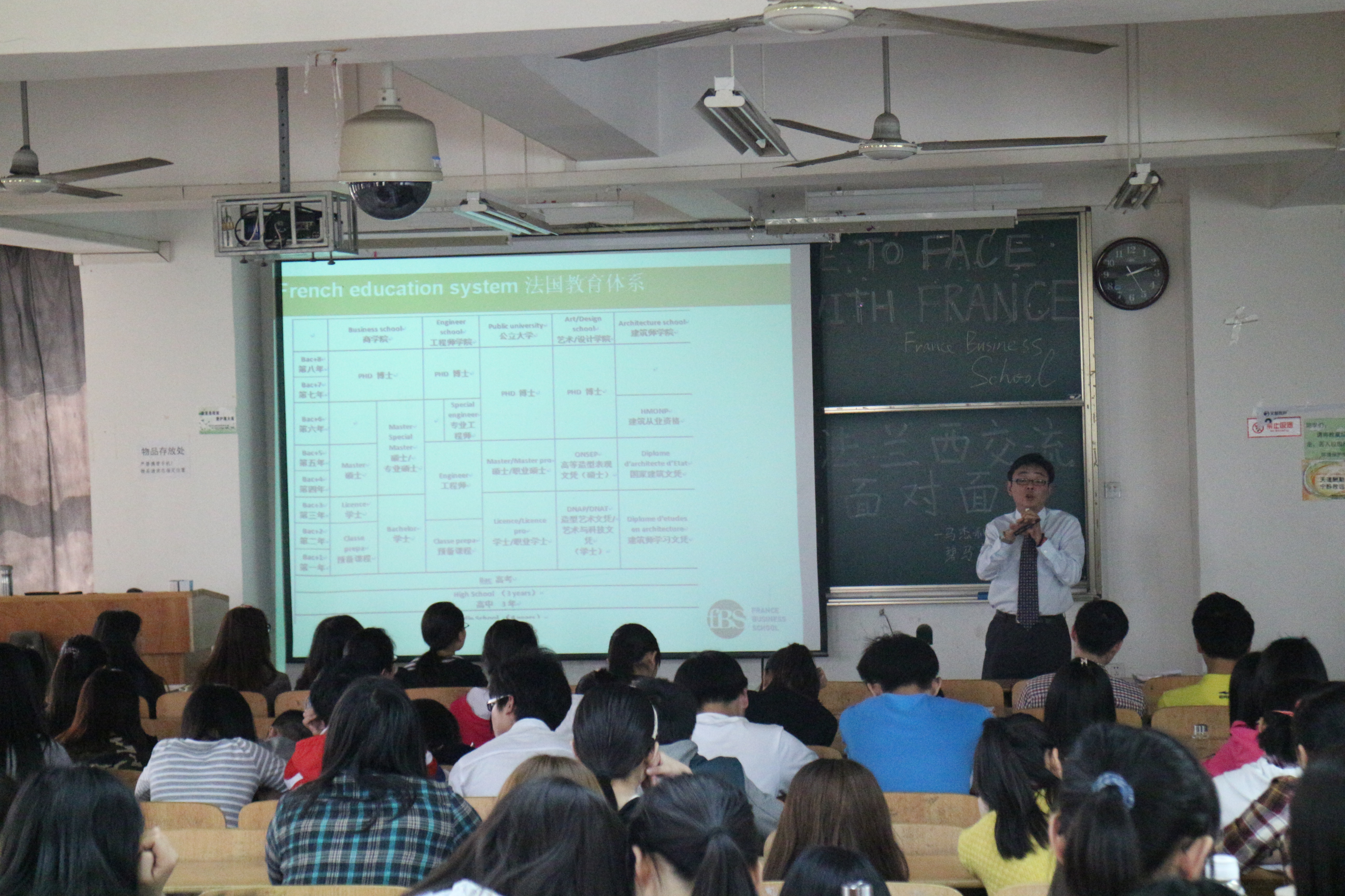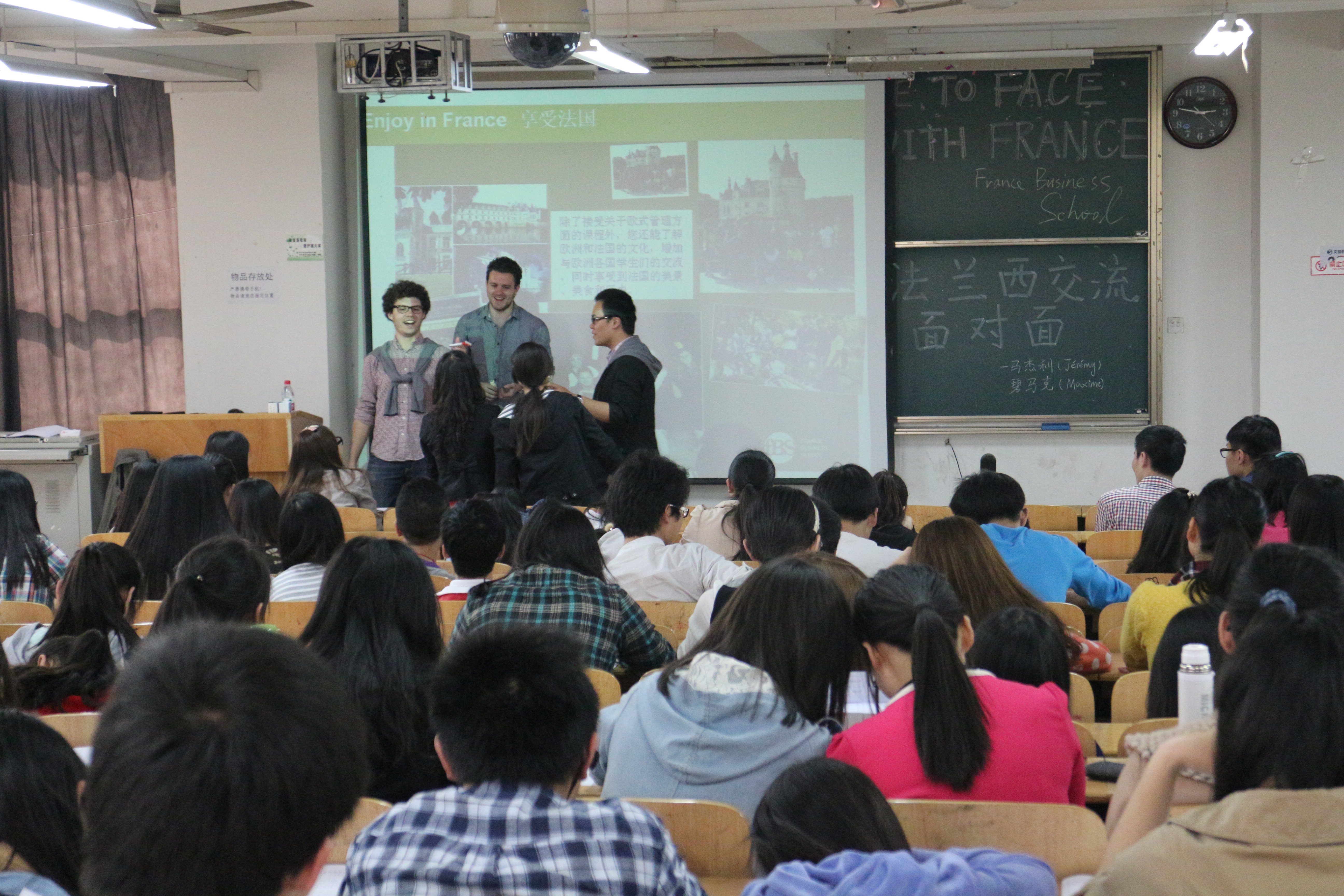 (特约记者 刘含芳)四月三日,法兰西商学院代表Kevin一行4人应邀来武汉长江工商学院进行“中法本硕连读(3+3)”及欧洲商务管理暑期项目宣讲。 上午十一点二十分,代表团抵达我校。简短的会面过后,武汉长江工商学院国际合作交流处的领导及工作人员带领Kevin一行参观美丽的校园。在和煦的春风中,大家一路走过校园绿道,篮球场,体育馆,荷塘边和图书馆,最后到达预定地点共进午餐。 ![]() 下午两点,宣讲会正式开始,慕名而来的同学们让教室座无虚席。国际合作交流处副处长马冬玲老师首先对远道而来的嘉宾表示了热烈的欢迎,接着法兰西商学院代表Kevin逐一向大家介绍了法国教育体系,法兰西商学院,教育使命,精英商学院项目,本科项目,硕士项目,申请资格,申请流程,留学法国,日常生活等项目相关信息,同学们听得津津有味。Kevin表示,参加项目的同学,除了接受关于欧式管理方面的课程外,还能了解欧洲和法国的文化,增加与欧洲各国学生们的交流,同时享受到法国的美景、美食和历史,引起了在场学生的极大兴趣。 ![]() 接着,法兰西商学院学生代表Jeremy和Maxime上场介绍法兰西商学院,并热情地与现场学生互动,考验大家对法国文化及风土人情的了解,还事先备有贴心小礼物送给大家。来自浪漫国度的两位大帅哥让现场的同学们激动不已,大家踊跃举手回答问题,并就自己对法国感兴趣的方面,如法国学生的学习,生活等,对Jeremy和Maxime进行提问,现场气氛热烈非凡。 ![]() 宣讲结束时,法兰西商学院代表Kevin老师表示热烈欢迎武汉长江工商学院的同学参加两校合作项目,赴法兰西商学院攻读学位。最后,武汉长江工商学院国际合作交流处副处长马冬玲老师总结发言,对Kevin一行表示感谢,并鼓励同学们珍惜走出国门的机会,在国内完成一定的学业后继续赴法兰西商学院深造。 |