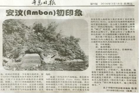 这是我初到Ambon为其作的一首诗,目前编辑在《AMBON初印象》一文中,且文章已收录于印尼“2016年3月18号千岛日报第9版”。