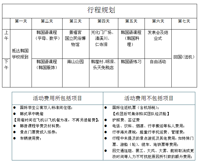 1.获得韩国高校颁发的韩国文化研修结业证书;
