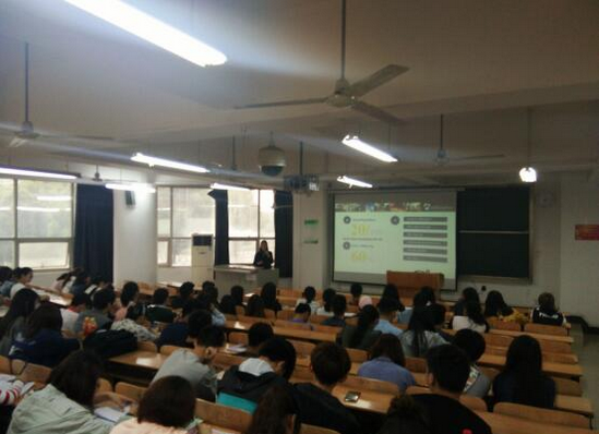 会议过程中,吴倩琳女士向同学们简单介绍了英国的代表性建筑以及人文精神,并通过四个方面——地理位置、校园环境、教学质量、生活向同学们阐述了选择北安普顿大学的原因, 据她介绍,北安普顿大学距离伦敦仅55分钟火车车程,距伯明翰仅40分钟车程,位于英格兰的中心位置,当地人使用纯正的英式英语。“英国校园与中国校园很明显的区别在于英国的校区是全开放的,是与街道连接在一起的。”吴倩琳女士如是说。在教育方面,北安普顿大学的必修课程只有两门,剩余的课程可以通过学生的兴趣自行选择,“这是与中国的教育方式最明显的差别。”她表示,通过在北安普顿大学的交流学习,75%的毕业生可以拿到二等一或者以上学位,并且通过平台效应,可以进入一流大学拿到更高的学位。在生活方面,她表示,宿舍内,每个人的空间都是独立的,而食物则是典型的西餐标准,食物的价格也在能够接受的范围之内。对于校园环境方面,她表示,学校提供非常完善的生活学习条件,图书馆内有良好的学习和休息设施,还为毕业生提供就业指导,简历修改,面试培训等帮助。
