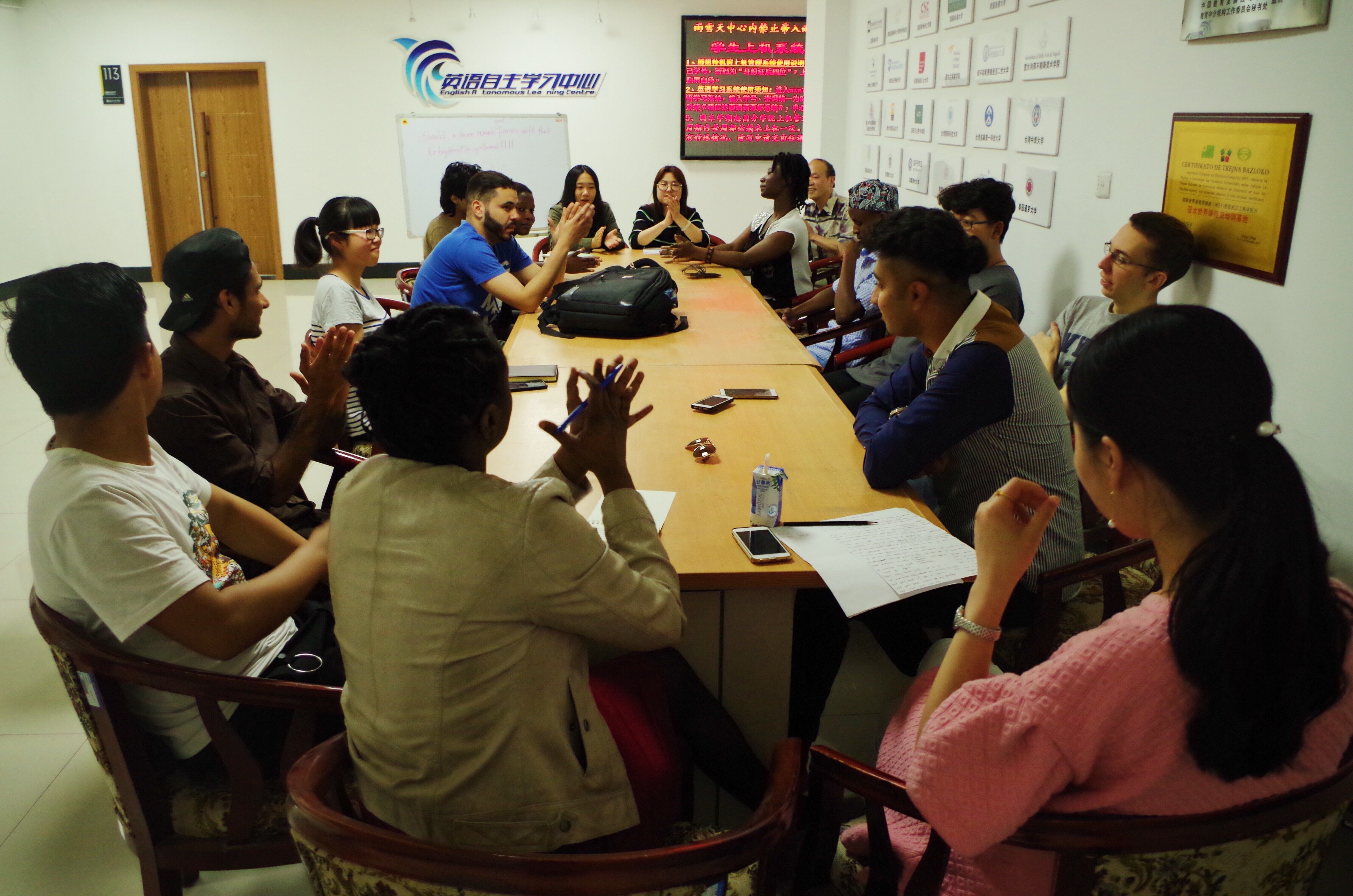 新闻中心讯(记者 王依林)5月10日下午4点,在外语楼114实践活动中心,坐满了前来参加此次双语沙龙辩论赛的同学们。此次辩论赛,双方辩手主要由英语俱乐部的中国学生和国际学院的外国留学生组成。由国际教育学院张梦慈老师主持,外教Jacob、Sandrah,汉语老师张青也同样参加了此次辩论赛。此次辩论的主题是“分手后还应不应该做朋友”,此次辩论赛的主要目的是希望中外学生能够有更多的机会进行更多的交流,使中外学生能够学习对方的语言。