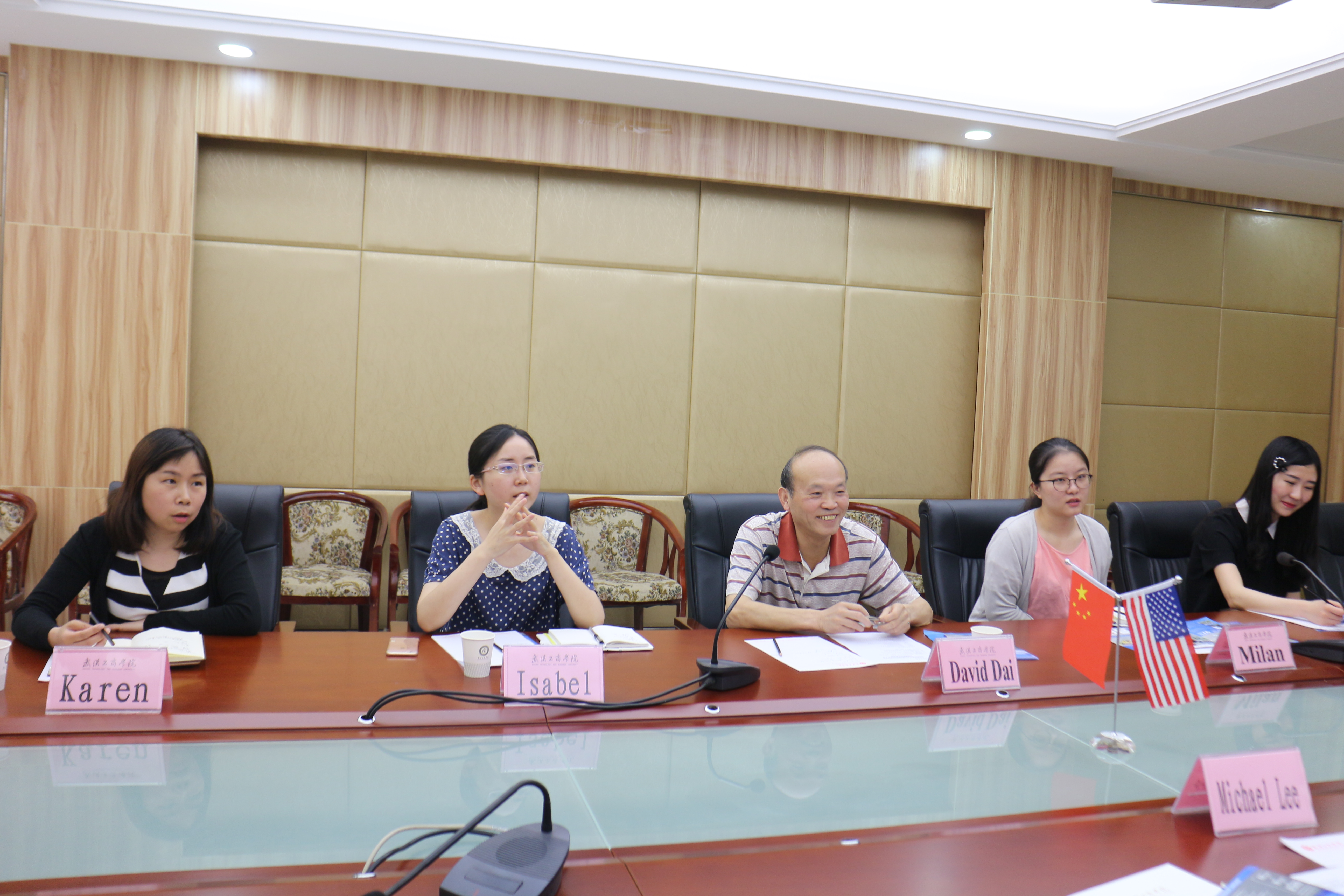 会议开始,我校国际交流处处长代胜桥明确了大会目的,“成立联合办学,保证生源,从而进一步提高教学质量”。随后我方各个代表都发表了自己的看法:从过去几年的观察中,合作项目一直受到学生的欢迎,希望与美国威斯康星大学持续合作。会议期间,美国威斯康星大学代表充分肯定了我校代表的发言,并表示,两校之间已经有着良好的合作基础,这点受利于相似的学校规模与办学理念,并希望与我校进一步发展合作关系。