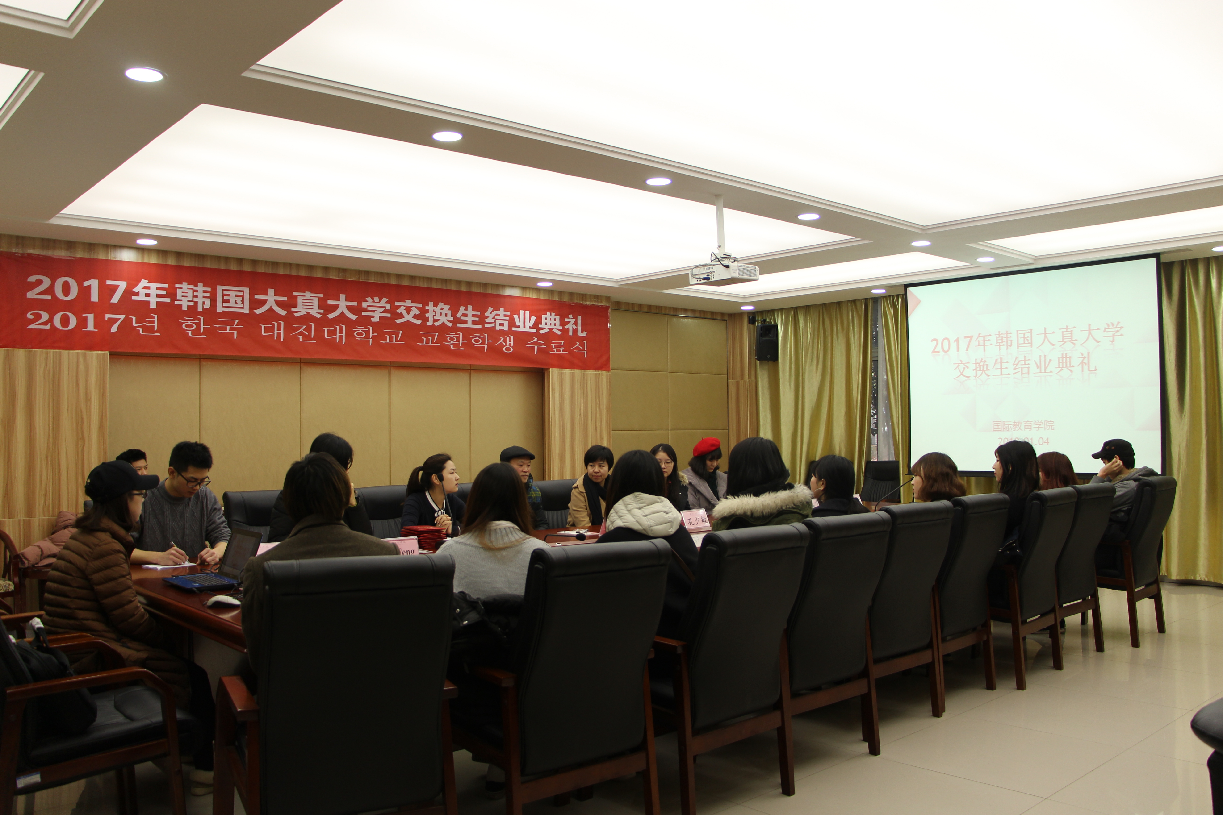 新闻中心讯(记者 杨旭 段开鑫)1月4日上午10:00,必赢优惠y272net于该校国际处国际会议室为韩国大真大学8位交换生举行了汉语课程结业典礼。国际教育学院院长代胜桥和该院全体老师参加了本次典礼。典礼由张梦慈老师主持。 ![]() 摄影:阮娜 据悉,韩国大真大学的8位交换生在该校完成了一个学期的汉语初级课程研修,课程涵盖汉语听、说、读、写,以及书法、剪纸、武术等中华传统文化实践活动。 ![]() 摄影:阮娜 典礼伊始,代胜桥院长对韩国交换生完成研修表示热烈的祝贺。他强调说:“结业不等于结束,而是意味着你们人生中一场新旅程的开始,希望大家回国后能够继续学习、传播中国文化。”他表示,必赢优惠y272net和大真大学有着深入的交流合作情谊,未来该院也会派送交换生到大真大学学习,希望两校交换生友好相处、互帮互助。学院各位老师也给韩国学生送上了真挚的祝福,特别是张梦慈老师精心准备,用韩语给韩国学生送上祝福,张青老师也通过趣味十足的成语接龙表达了对韩国留学生的美好祝愿,同时也让他们更深层次了解到了中国文化的博大精深。 随后,代胜桥院长为韩国交换生颁发了结业证书。典礼结束后,该院通过视频向大家展示了交换生在校一学期的学习生活时光。典礼结束后,与会师生兴致勃勃地开展了一场“包饺子•话团圆”活动,通过具有中国特色的民俗活动为韩国交换生回国送上美好的祝福。 |