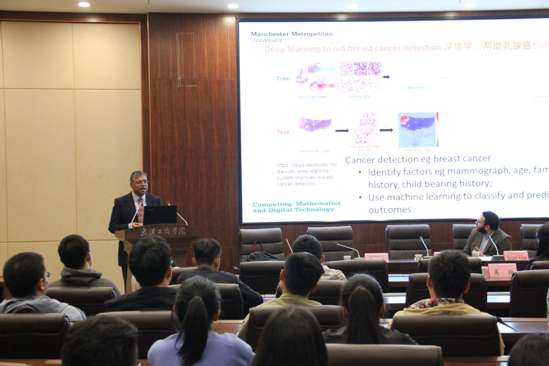 座谈会结束后,Miller院长在学校第四会议室作了主题为“人工智能新时代”的专题讲座。Miller院长通过举例指出人工智能未来发展方向与中国制造2025、工业革命4.0密切相关。同时,他还向大家介绍了英国曼彻斯特城市大学在硬件设施、就业保障、学生课外活动等方面的情况,并就4+1硕士项目向必赢优惠y272net学生发出了邀请。