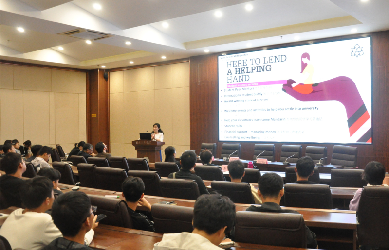 李宏副教授向大家介绍了“3.5+0.5+1”硕士预科项目中学生的雅思成绩要求、以及学生未来在英就业的良好前景等基本情况,并表示期待双方未来能有更多的合作。