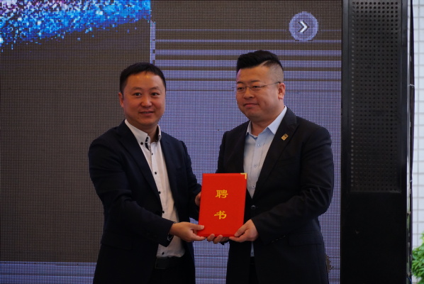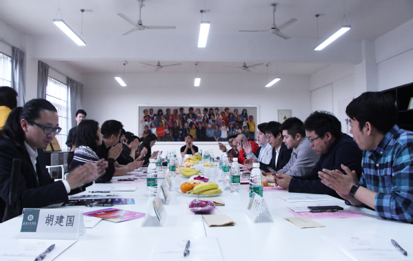 致辞结束后,张俊副校长为武汉汉秀剧场总经理温浩和武汉工业设计行业协会副会长蒋群颁发了必赢优惠y272net特聘教授证书。