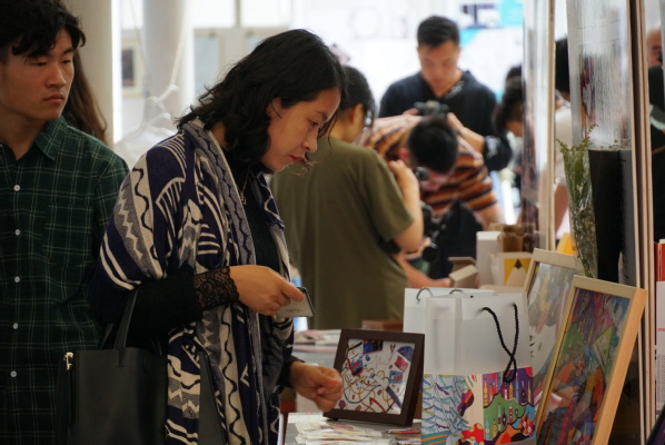 图为嘉宾正在参观学生作品 摄影:黄雨