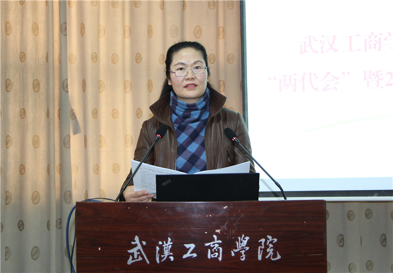 校工会常务副主席苏红做了主题为《坚守立德树人初心使命 凝聚科学发展奋斗力量》的工作报告。她总结说,2019年教代会、工会围绕学校中心工作,在推进学校民主政治建设、促进教师队伍发展、引领校园文化、关注民生、加强自身建设等方面都取得了一定的成绩,她从如何增强民主管理的凝聚力、服务师生的执行力、工会工作的吸引力、工会工作的感染力、文化校园的亲和力五个方面汇报了2019年学校工会开展的各项工作。她表示,2020年,是学校总结经验、谋划全局、奠定基础、集中攻坚、创新发展的关键之年,工会将不忘初心、牢记使命,以围绕立德树人、事业发展、凝心聚力、和谐稳定、学生成长成才为发展理念,以工会工作制度化、规范化、标准化、精品化为发展主线,促进学校工会工作全面提速提升,改革创新,奋发有为,不断开创工会工作新局面。