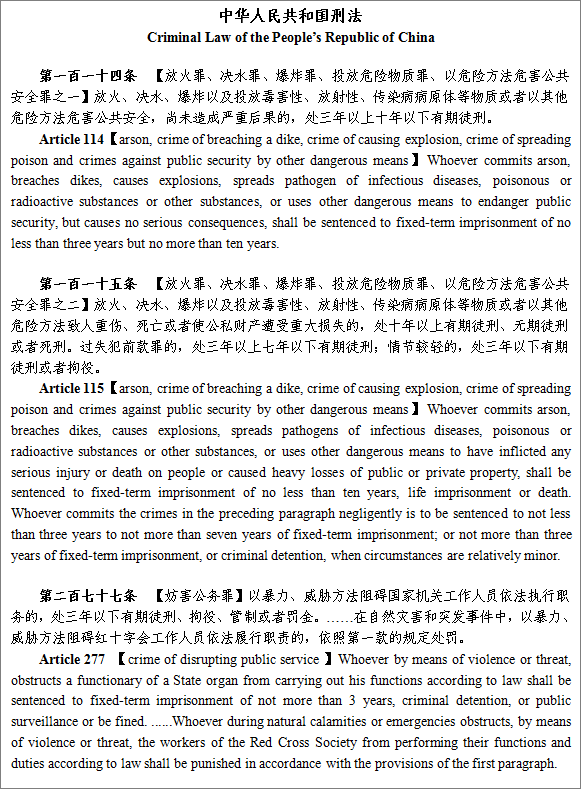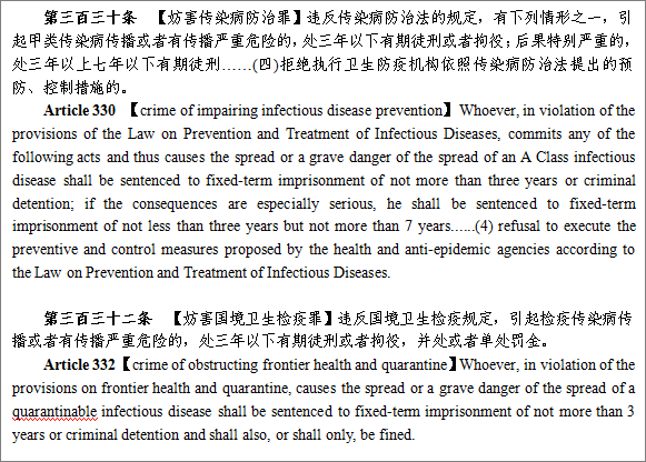 Note:The English version of the above legal provisions is from the official websites of the Supreme People’s Court of PRC, the Ministry of Foreign Affairs of PRC, the National Health Commission of the PRC and other government departments. Parts of the quote are from the www.pkulaw.cn.