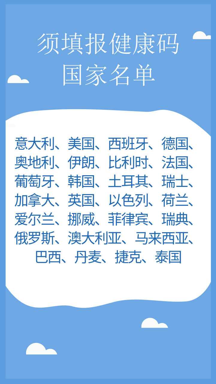 温馨提示:相关国家名单有可能发生变化,请您及时关注健康码填报最新信息,确保健康码符合登机要求。