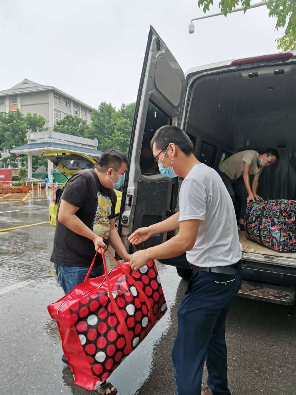 同时,学校还组织了一支近百人的教师志愿者队伍,奔赴武汉各车站接送毕业生,在校园里搬运毕业生的行李至寄送点或校门口。学校信息中心职工彭烈华是志愿者服务队中的一员,一大早他就在宿舍楼帮毕业生将行李送到学校快递点,一天下来,他上下宿舍楼搬运了50多趟,大汗淋漓,衣衫尽湿。“在这个有些不一样的毕业季,我们更要为学子们做好服务。”