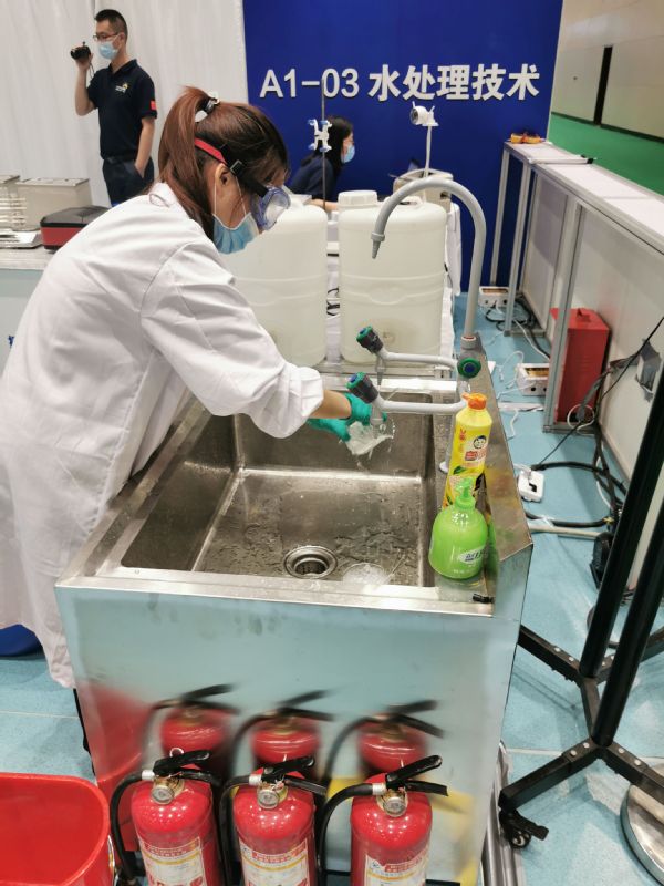 据悉,本次参加水处理技术项目比赛的选手均由8月份的省选拔赛角逐选出,并统一参加了为期一个多月的集训。在总决赛现场,他们分别进行“实验条件下污水絮凝优化实验”“水循环系统装置安装、调试、测量及运行控制”“水质指标测定”三个模块的比赛。