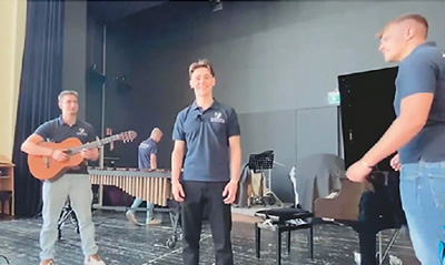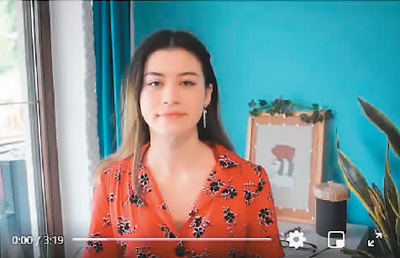 德国赛区参赛选手海洋(中)在录制的参赛视频中介绍自己。