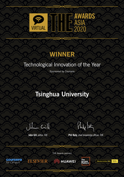 雨课堂为清华大学赢得2020泰晤士教育高等教育亚洲年度技术创新奖