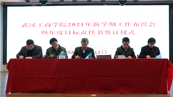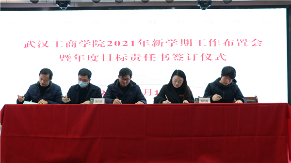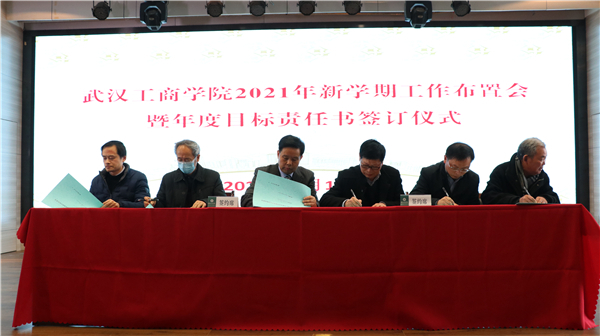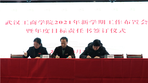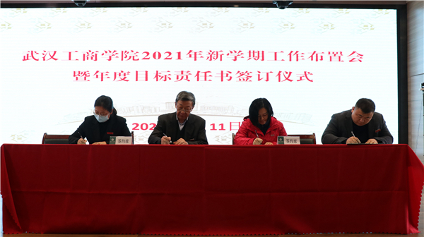 随后,校领导与学校各单位负责人签订了2021年度目标责任书。