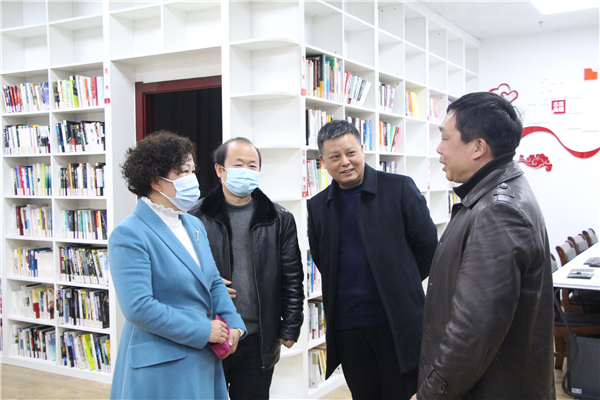 图为与会领导参观青菱街图书室 摄影:李洋洋