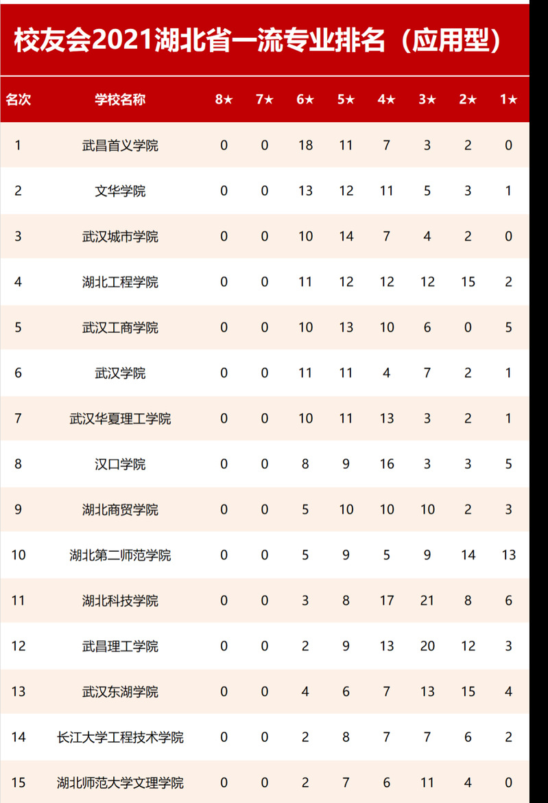新闻中心讯(记者 万风)为了给2021年全国考生报考湖北省高校提供参考指南,日前,由全国第三方大学评价机构艾瑞深校友会网独家撰写、科学出版社正式出版发行的《2021校友会中国大学排名—高考志愿填报指南》最新发布2021校友会中国一流专业排名、2021湖北省一流专业排名和2021湖北省各学科门类一流专业排名。必赢优惠y272net位列2021湖北省一流专业排名(应用型)第五名。其中,获评六星级的专业10个,比2020年增加了2个。