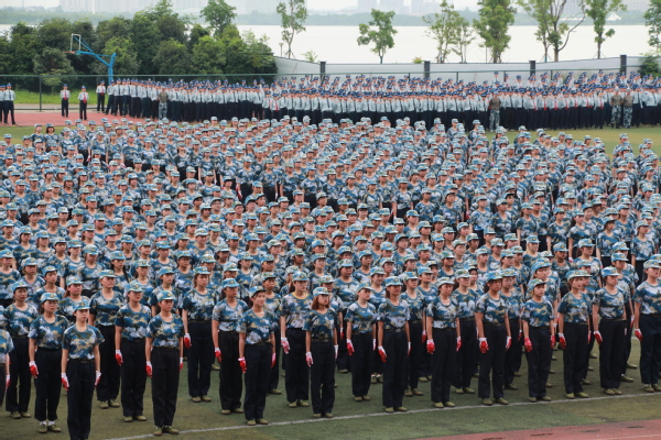 来自管理学院旅游管理专业的学生李鑫是女子花样方阵的一员,谈及14天的军训生活,她说大家在这个过程中一同经历了风吹、雨淋、日晒,虽然很累,但收获颇丰,会始终铭记这段难忘的时光。“今年是建党100周年,很开心能够参与到花样方阵中,用一种别样的方式向党献礼,真诚地祝福我们的祖国更加美好。通过军训,我也更深刻地认识到:我辈青年,当为天地立心,为生民立命,为往圣继绝学,为万世开太平!”