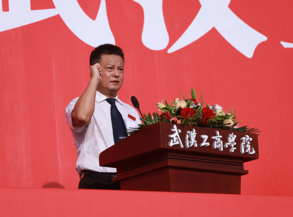 党委书记刘生元在典礼上带领全体新生庄严宣誓:“我将秉承‘弘德博问、和谐拓新’校训精神,以实现中华民族伟大复兴为己任,刻苦学习,努力拼搏,不负时代,不负韶华!请党放心,强国有我!”,誓言铿锵有力、声声入耳,喊出了武工商学子为实现第二个百年奋斗目标和中华民族伟大复兴的中国梦而奋斗的意志和决心。