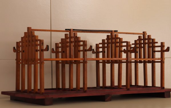 精巧美观的木质餐具、茶具、木凳,全榫卯结构的土家族吊脚楼模型,凝聚着中国匠人的智慧;色彩鲜艳的手工编织品、葫芦、傩戏面具、西兰卡普、漆扇,古色古香的秦简,逼真传神的皮影人偶,无不体现出中国传统手工艺的博大精深。师生们一边观赏,一边发出阵阵赞叹声。