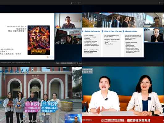 4月24日,由中国(教育部)留学服务中心(以下简称“中心”)主办的“2022中国国际教育巡回展”(以下简称“线上教育展”)圆满落幕。在历时两天四个场次的直播活动中,来自英国、美国、加拿大、法国、新加坡、西班牙、新西兰、匈牙利、日本、韩国、马来西亚、泰国、菲律宾、俄罗斯、克罗地亚、中国和中国香港等17个国家和地区的近120所院校和机构集体亮相,以图文展示、视频讲解、嘉宾连线、云端逛校园等多种形式,为计划出国的学生和家长们带来后疫情时代最及时、全面、权威的海外留学资讯,与观展学生充分交流互动、答疑解惑,获得社会各界高度关注及好评。线上教育展在小鱼易连、新浪微博、微信视频号、央视频、B站、抖音等平台同步直播,全网总观看量超过400万人次。中央电视台13套新闻频道在4月24日《朝闻天下》节目中对本届线上展览进行深度报道。