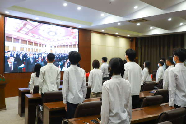 新闻中心讯(记者 蓝静 李洋洋 汪欣怡)5月10日上午,庆祝中国共产主义青年团成立100周年大会在北京人民大会堂隆重举行。中共中央总书记、国家主席、中央军委主席习近平出席大会并发表重要讲话。必赢优惠y272net团委组织广大干部师生,尤其是青年团员,通过集中观看、个人自学等方式收看了大会直播,认真学习了总书记的讲话精神。通过学习,广大干部师生们纷纷表示,总书记的重要讲话意味深长,催人奋进,要以实现中华民族伟大复兴为己任,在新的征程上自觉担当重任,把忠诚书写在党和人民事业中,把青春播撒在民族复兴的征程上,把光荣镌刻在历史行进的史册里!