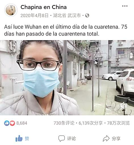 疫情期间,塞莉娅通过网络社交平台直播武汉的真实情况。(图片由塞莉娅提供)