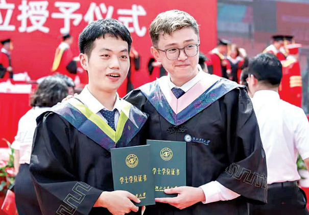 “5年前,有一个小伙从哈萨克斯坦来到了中国,他爱上了一座城市叫武汉,他爱上了一所学校叫湖北工业大学,他爱上了一种调味品叫老干妈……”6月21日上午,湖北工业大学举行2022届本科生毕业典礼,周安南代表留学生用流利的普通话演讲。谈起求学路上的温暖点滴,他数度哽咽。
