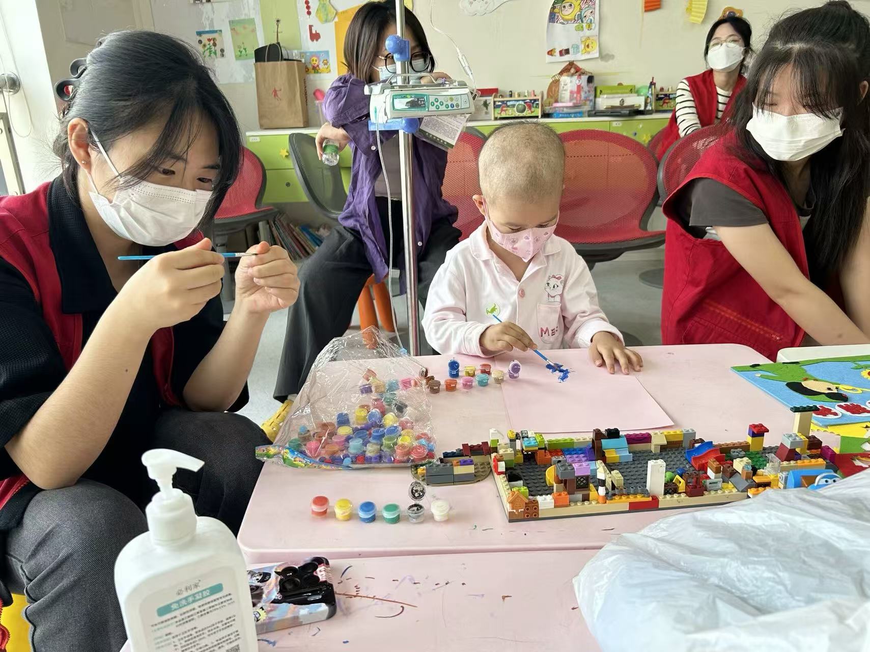 此次活动内容丰富,志愿者们精心准备了绘画工具、手工材料、益智玩具和趣味绘本,通过互动游戏、故事分享和才艺表演拉近与孩子们的距离。病房内,志愿者们耐心陪伴患儿绘画、折纸,协助医护人员开展轻松的心理疏导,缓解孩子们的治疗压力,志愿者们通过力所能及的陪伴,让孩子们感受到社会的关爱。