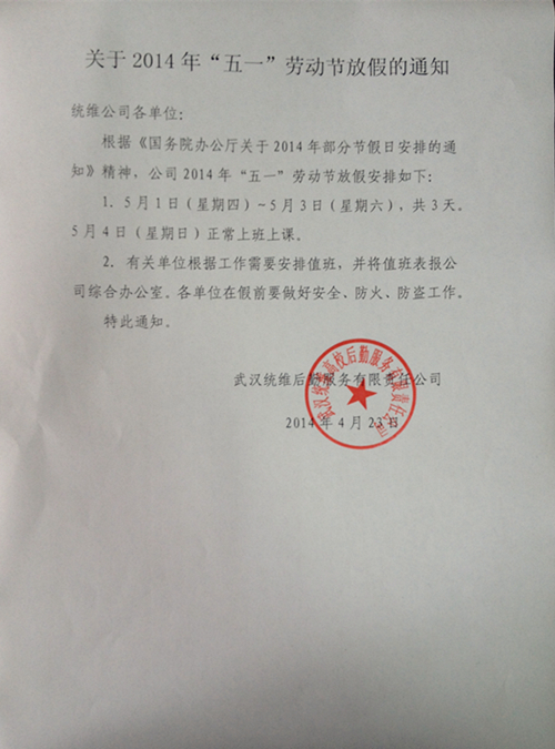 2014年五一放假通知