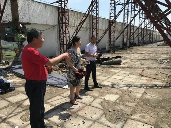 为后勤领导一行在综合楼楼顶视察