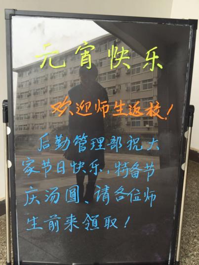 一早,食堂工作人员早早开餐,除了欢迎师生返校,祝大家节日快乐的欢迎词外,还准备了香浓软糯的汤圆,为节日送上了传统美食。
