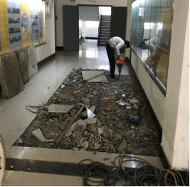 2、综合楼705教室地砖维修。整个705教室地板空骨,寒假期间,全部挖起重贴。