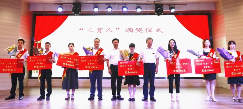 图为陈伟书记和桂裕清副校长为“三育人”获奖者颁奖,左一为后勤“三育人”获奖者陈山同志
