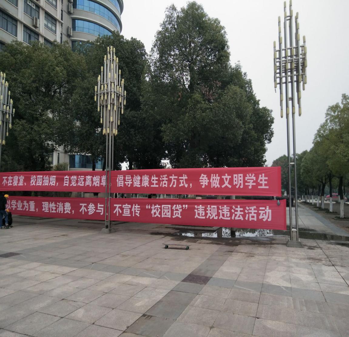 其次,后勤以“丢掉香烟,远离烟草”为核心内容,以“香烟是魔鬼的契约”为口号,呼吁广大师生员工尽量不抽烟,倡导以运动为主的健康生活方式,并在综合楼、外语楼、学生二食堂级6-9东主干道两侧积极开展禁烟控烟宣传工作。