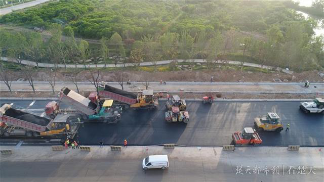项目经理李春言介绍,通过此次沥青试验段摊铺,项目及时总结施工经验,在保证质量的前提下,五月底完成全线机动车道底、中层沥青摊铺,实现六月竣工通车的目标,献礼军运会。