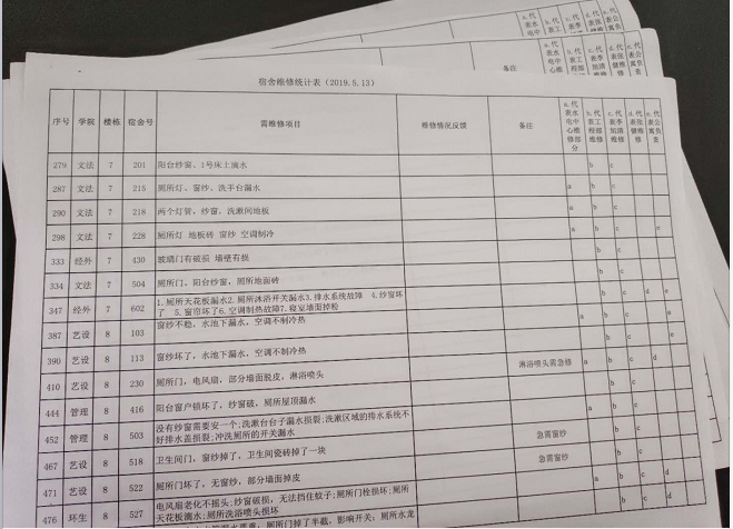 据悉,此次大会旨在进一步提高维修反应速率及维修质量,确保后勤基建及维修按时保量的完成。根据前期维修内容和经验,此次会议提出以下几项内容:一是确定2019年暑期工作的重点为积极主动查访1-13栋学生公寓维修点,分类汇总维修信息;二是召集维修队、工程队及空调、热水器、门窗玻璃、防水等专业维修队按维修工作内容和时间分工合作,确保6月10日前完成已确定的维修项目。