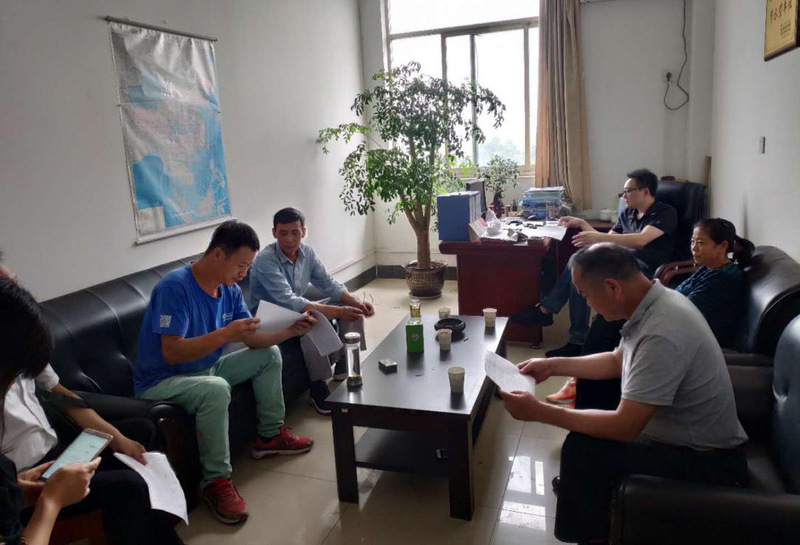 图为各部门领导、施工方代表及校方代表办公现场
