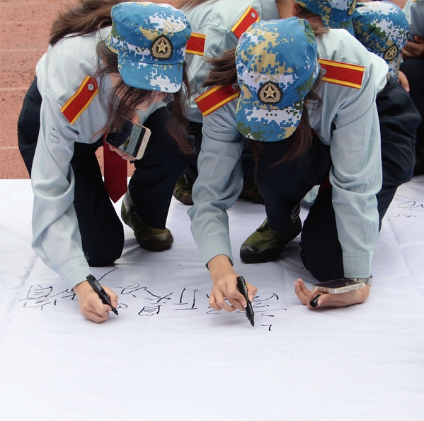 图为全体学生一起签订《寝室安全承诺书》 摄影:倪翊豪