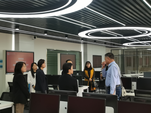 随后,在张俊副校长和亓小林校助的陪同下,罗航副校长一行来到学校实验教学中心,重点参观、调研了现代企业运营综合实训中心和今年新建的电商直播实验室、计算广告实验室、广告摄影实验室。双方围绕虚拟仿真实验教学中心的建设和大学生学科竞赛的开展情况展开了深入交流,并对如何实现实验教学资源共享等问题进行探讨。