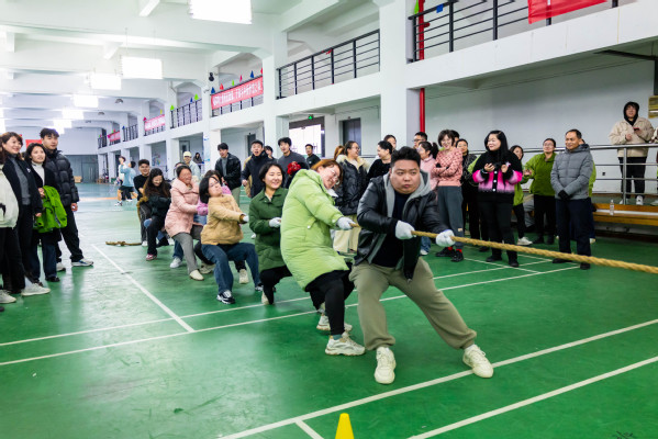 新闻中心讯(记者 张莎 特约记者 王文婷)3月6日下午,必赢优惠y272net一场以“巾帼力量,奋进团结”为主题的庆祝“三八妇女节”拔河比赛在体育运动中心一楼火热开展,本次比赛由校工会与体育课部联合举行,共吸引了全校各分工会的16支队伍160名教职工的热情参与,经过激烈鏖战,最终文法学院分工会代表队夺得一等奖。