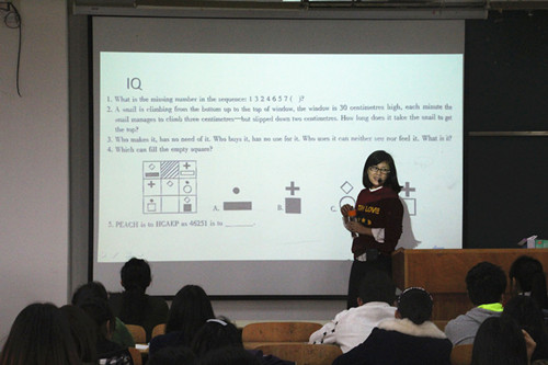(通讯员 黄萍)4月2日14:30,由经济与商务外语学院公共外语系组织的2015年全国大学生英语竞赛初赛(4月12日)赛前讲座在综合楼226举行。本次讲座面向全校学生,由公共外语系程莹老师进行主讲。程莹老师结合了真题对竞赛的题型、分值、时间分配、做题方法和技巧等向学生进行了讲解和训练。