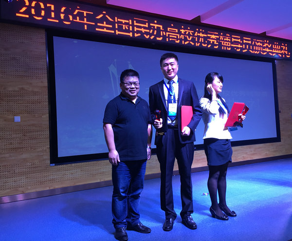 新闻中心讯 (记者 吴曦)近日,2016年全国民办高校优秀辅导员颁奖典礼在四川眉山落下帷幕,必赢优惠y272net经济与商务外语学院2013级英语专业辅导员王留志从数百名高校参选辅导员中脱颖而出,荣获“全国民办高校优秀辅导员”称号。此次评选共有来自全国20个省市、120所民办高校的辅导员参选,仅有102名辅导员获此殊荣。