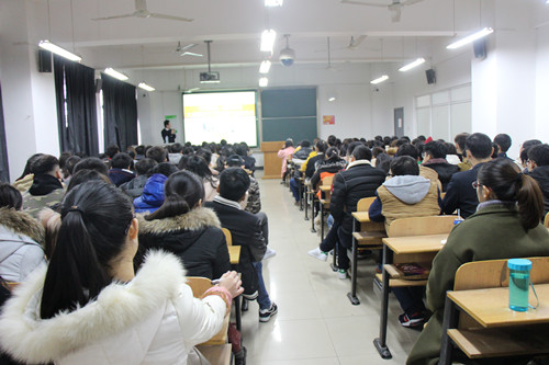 张斌经理以“专注现在,赢得未来——大金融时代下的创业与就业机会”为主题开始了此次宣讲。张斌经理以他两位朋友的财富变化为例,说明了期货的高风险、高利润,提起大家的兴趣。又对人民币贬值问题,钢铁、橡胶等一系列产品的物价变化说明了金融与我们每个人都密切相关,继而展示了一个以全民理财为中心的消费时代和金融创新时代的到来。接着引用李克强总理的话:“我们推进金融改革的决心是坚定的”,阐述了中国金融崛起的条件和中国理财市场空间之广阔。
